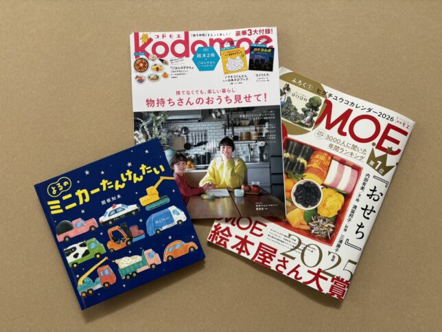 『よるのミニカーたんけんたい』(アリス館)が〈MOE絵本屋さん大賞2025 ファーストブック賞 第3位> を受賞しました。『kodomoe』2月号では受賞コメントが掲載されています。選んでくださった書店員の皆さま、本当にありがとうございました。